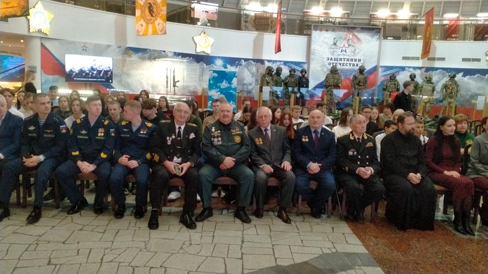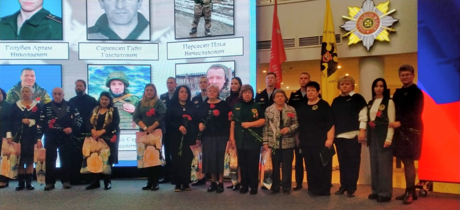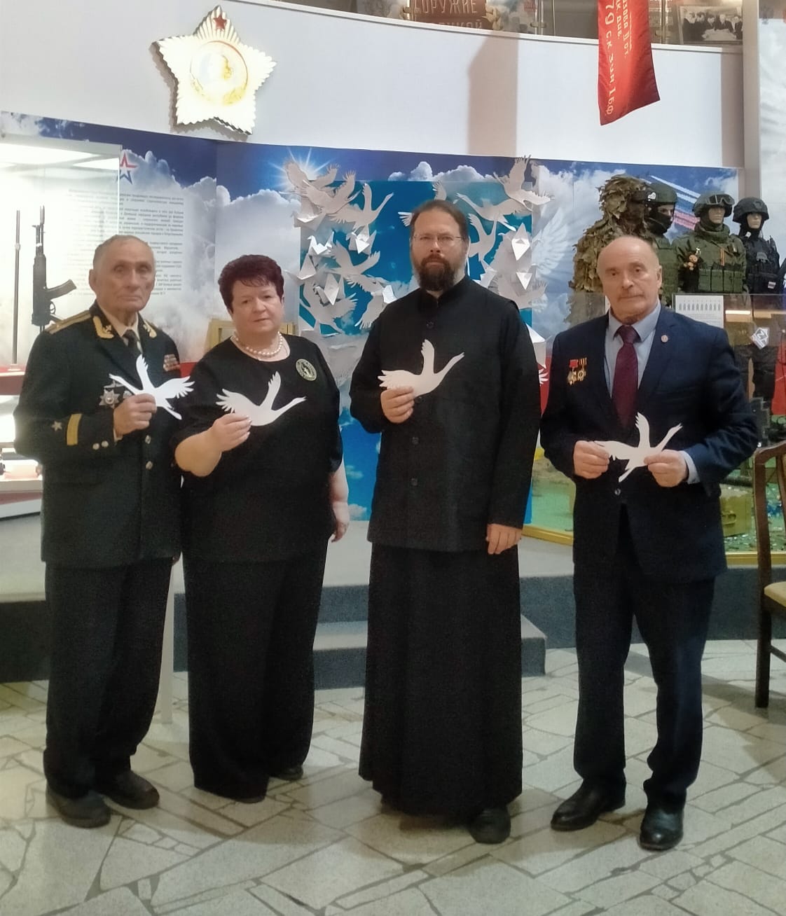 Ветераны, офицеры, молодежь и все присутствующие молчаливо сфотографировались на фоне белых журавлей и каждый из нас прикрепил своего журавля на экран в знак памяти тех, кто никогда больше не будет с нами на этой Земле.