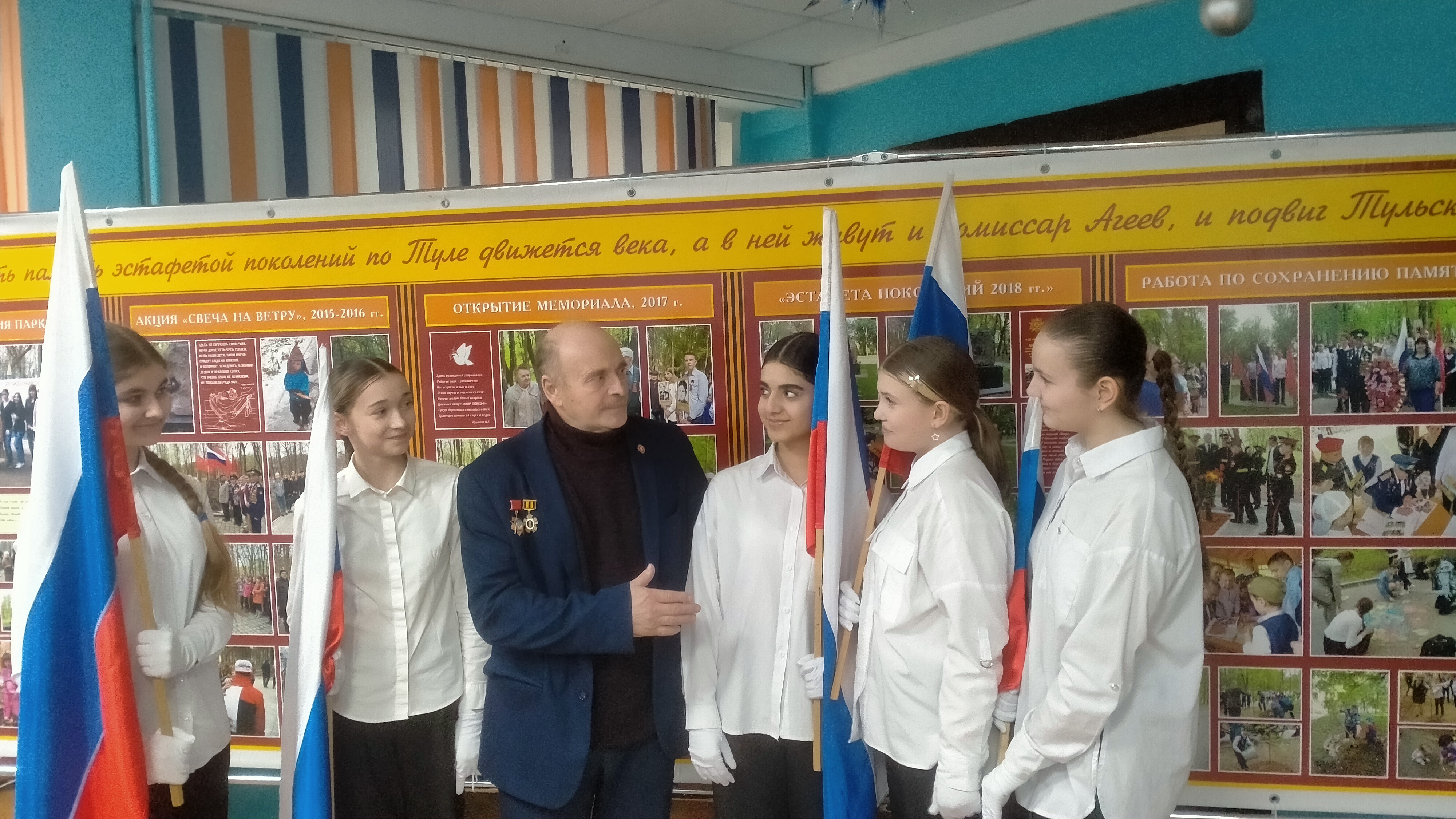 Председатель Тульского областного комитета Российского Союза ветеранов, сын фронтовика, участника боевых действий в годы ВОВ Лобанов Александр Павлович, член Тульского Отделения МООБВ «Марс- Меркурий» 9 декабря 2025 года встретился с учениками старших классов на просветительской площадке Центра Образования имени Героя Советского Союза Потехина города- героя Тулы. Александр Павлович провел презентацию авторской Знаменной галереи «Святое дело - Родине служить!», ответил на все интересующие вопросы юных патриотов. Ребят заинтересовали все разработанные председателем Знамена для тульских героических именных школ.