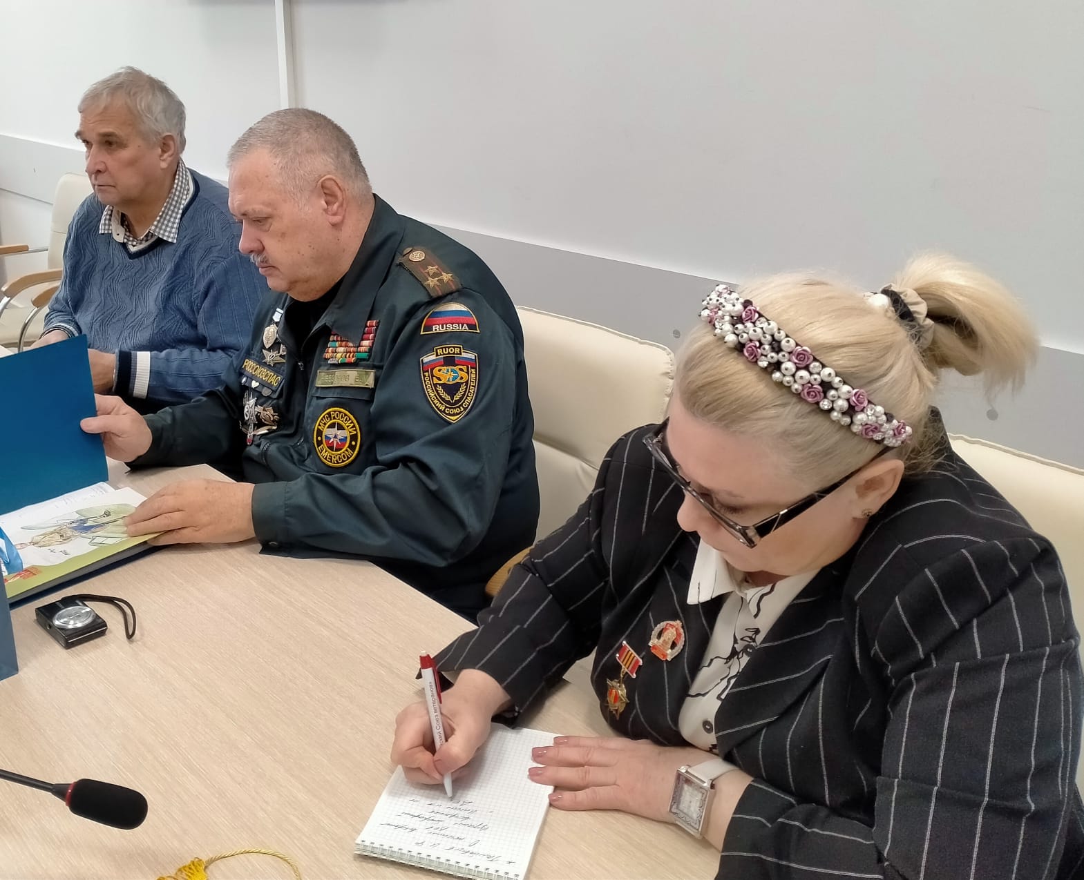 Инициировал эту встречу Председатель Тульского областного комитета Российского Союза ветеранов Лобанов А.П., член Тульского Отделения МООБВ «Марс- Меркурий» Ветераны встретились в Ресурсном Центре Комитета семей воинов Отечества. На повестке дня был вынесен вопрос «Об участии членов Президиума Тульского областного комитета Российского Союза ветеранов в выездных мероприятиях в качестве членов координационных советов». Председатель Тульского Отделения МООБВ «Марс- Меркурий» Светлана Юрьевна Панасина поблагодарила за активную работу в патриотическом воспитании в формате участия в конкурсном Проекте «Парад городов- героев» и вручила изданную МООБВ «Марс- Меркурий» книгу и вымпел «От воинской доблести к гражданским заслугам» самой активной из ветеранских организаций - Тульскому Морскому Собранию.