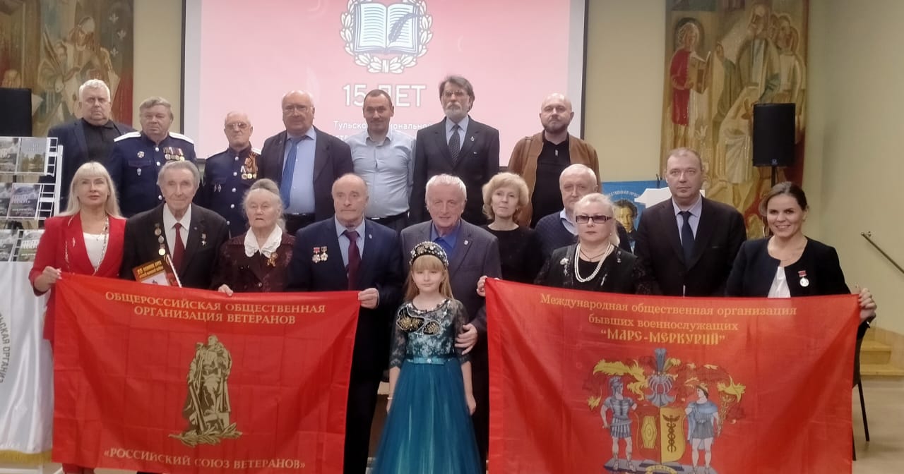 В рамках празднования 15- летнего юбилея Тульской региональной просветительской общественной организации «Знание» члены Тульского отделения МООБВ «Марс- Меркурий» (председатель Тульского отделения Светлана Юрьевна Панасина) совместно с ветеранским активом Тульского областного комитета Российского Союза ветеранов отметили День оружейника в областной научной библиотеке. В программу включены были торжественная и концертно- просветительская части. Почетным гостем был представитель московской дипломатической коллегии профессор, доктор филологических наук, дипломат и общественный деятель, председатель Пушкинского комитета Александр Лазаревич Зименков. Московскому гостю и известному тульскому оружейнику Герою социалистического труда, заслуженному художнику России И.В. Щербино были вручены от МООБВ «Марс- Меркурий» вымпел «От воинской доблести к гражданским заслугам» и книга «Оружие великой победы». В подарок всем оружейникам и участникам отчетно- выборной конференции Тульской региональной просветительской общественной организации «Знание», которую возглавляет на протяжении 15 лет активный член Тульского отделения МООБВ «Марс- Меркурий» - отличник просвещения, учитель истории и обществознания Яснополянской гимназии им. Л.Н. Толстого Сергей Викторович Гайдамак, прозвучали патриотические номера «Образ Родины» в исполнении члена Тульского отделения МООБВ «Марс- Меркурий» Проничевой Оксаны Викторовны и ее воспитанников из семьи военнослужащего, участника СВО.