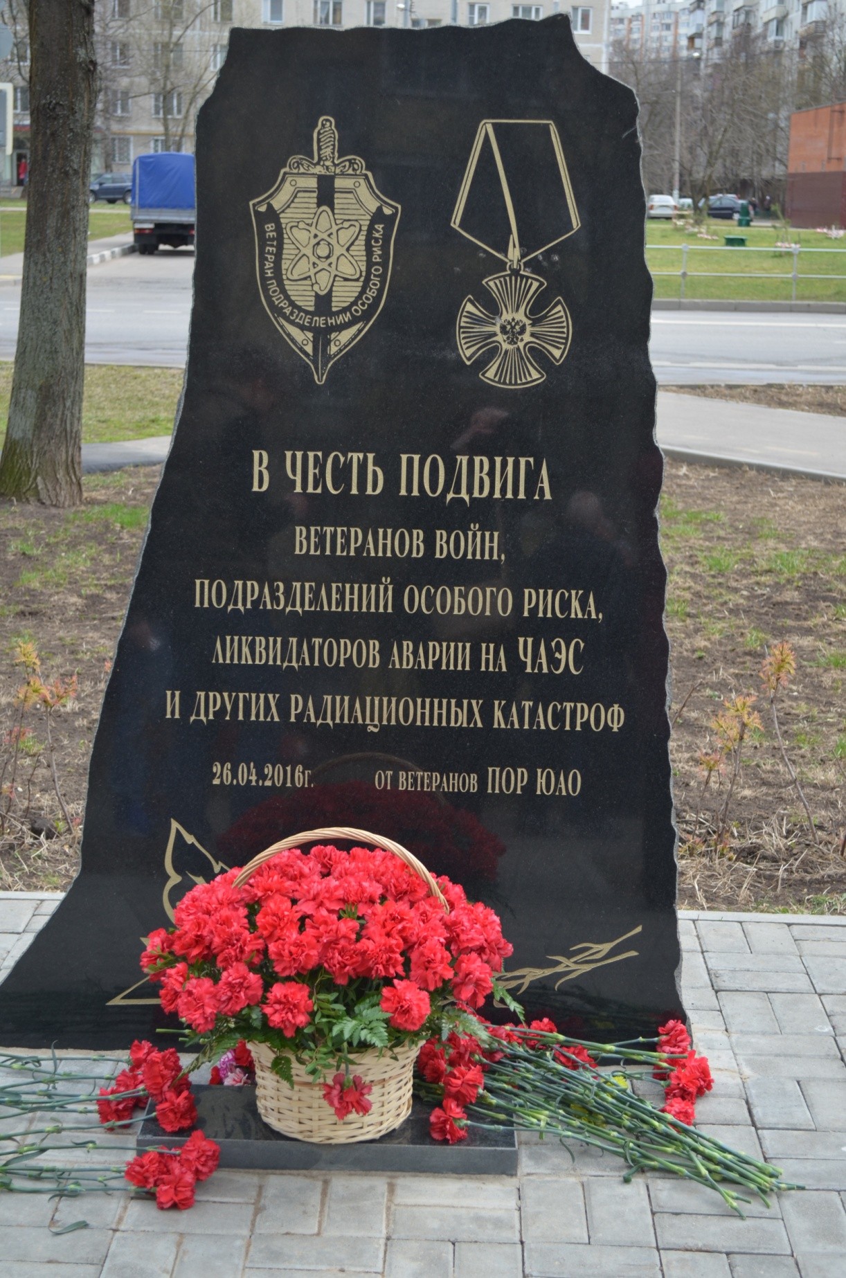 Памятник на Ореховом бульваре в ЮАО Москвы в честь подвига ветеранов ПОР и ликвидаторов аварии на ЧАЭС.
